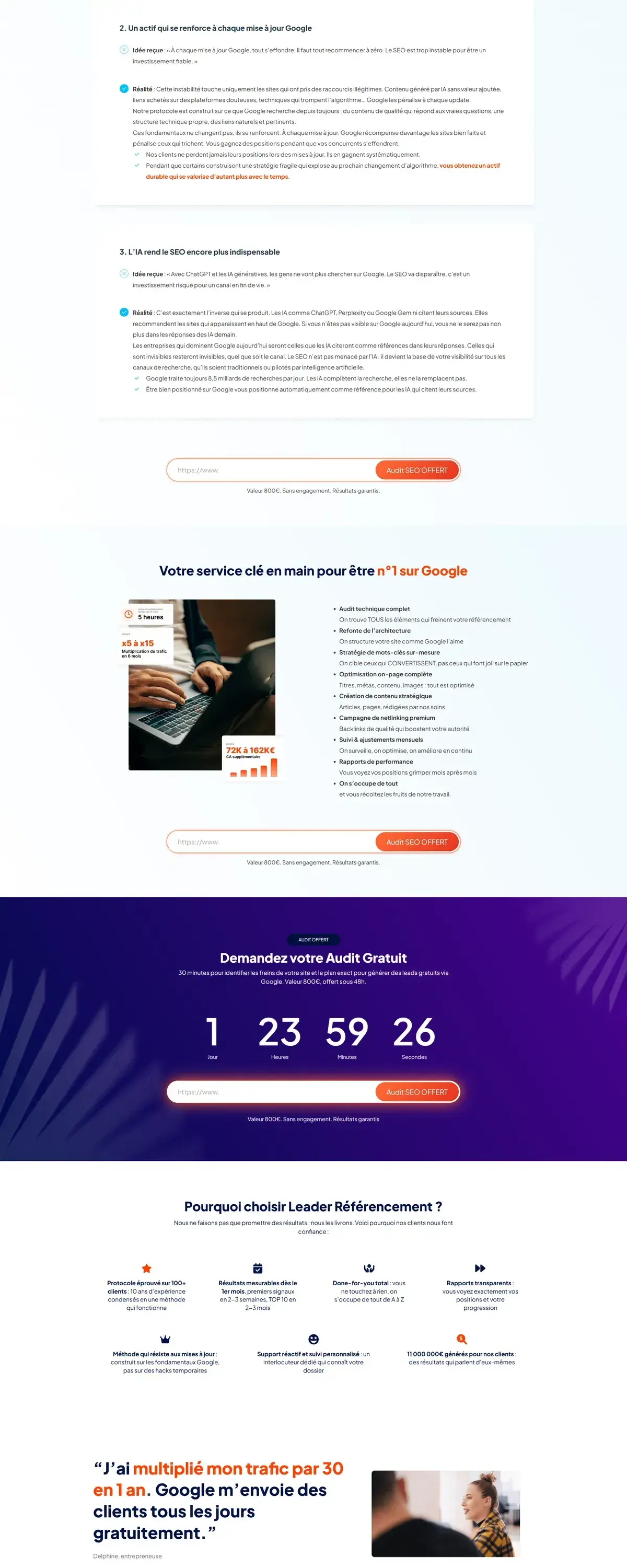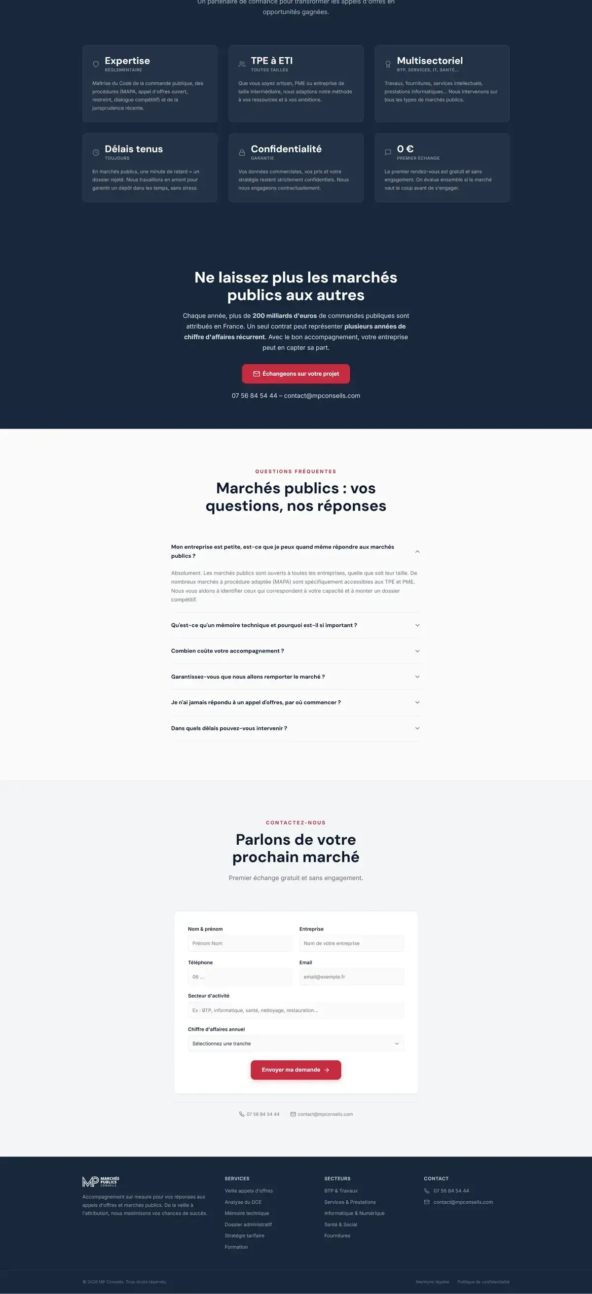 Marché ultra-concurrentiel. Chaque section pousse vers le formulaire.